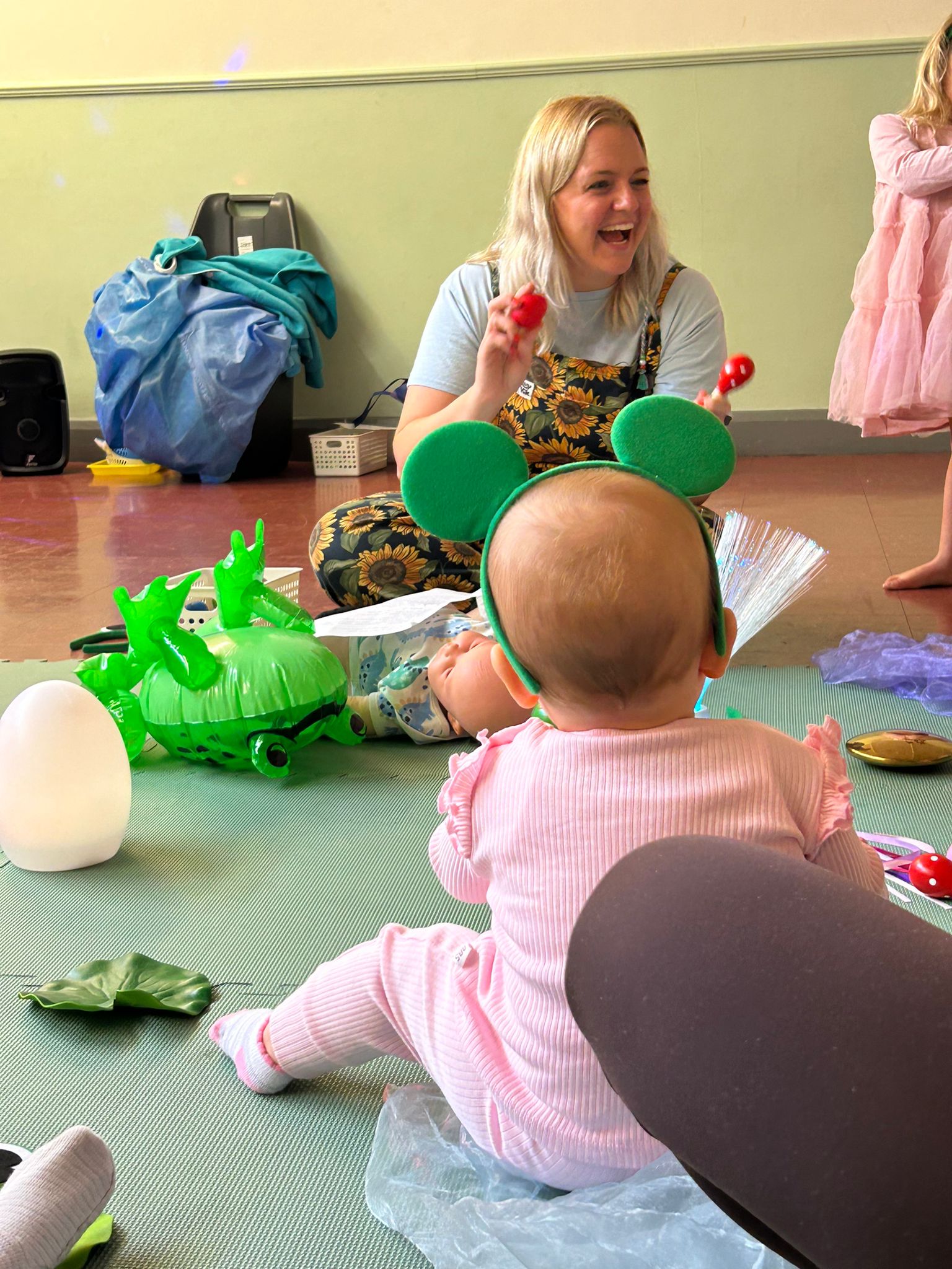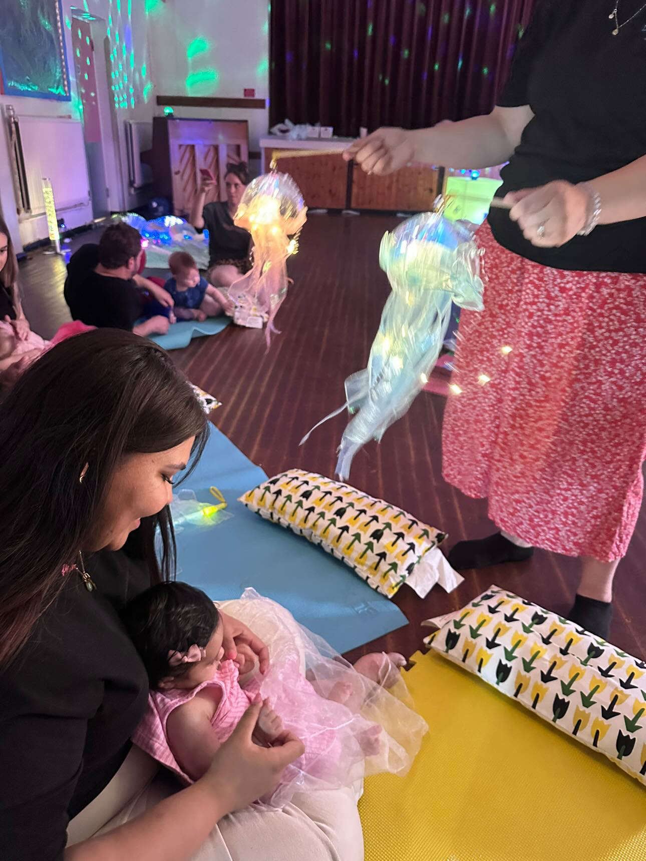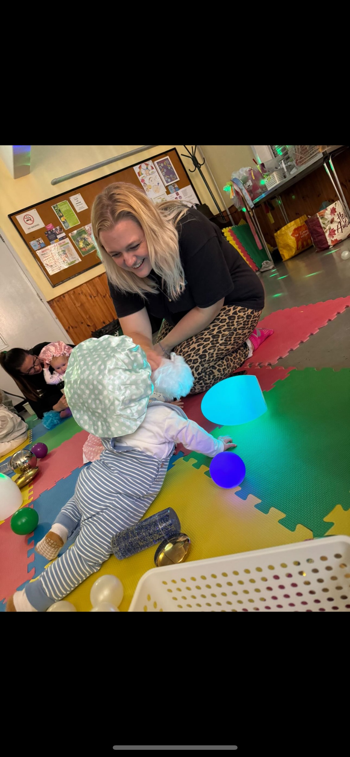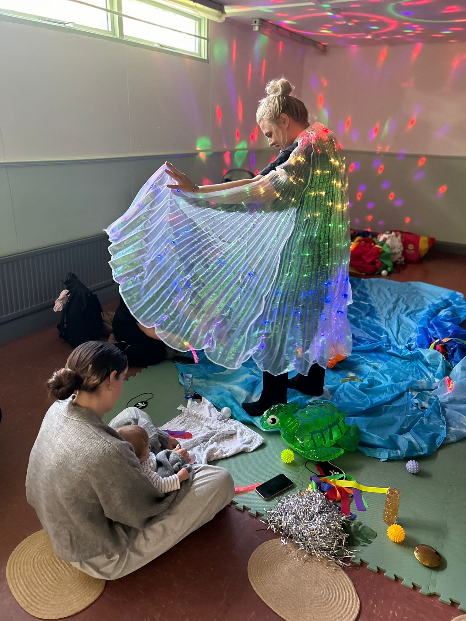 Learn gentle baby massage moves, baby yoga movement, themed sensory activities, a range of music, fun accessories and set ups for those essential photo opportunities, and of course bubbles.